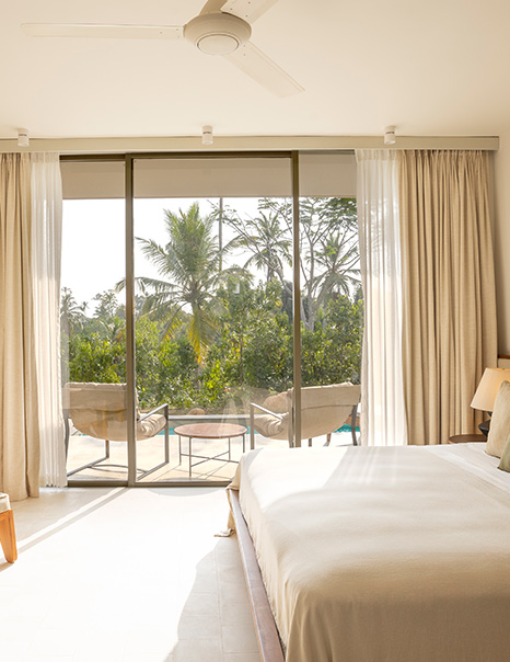 In case you get tired of your private plunge pool, the terrace is rather wonderful to admire those sunset from too. Tropical twilights are brief, but beautiful. So stay awhile, wait for the fireflies. Indoors, soft lights and cool comforts welcome you back, and promise of good sleeps to come.